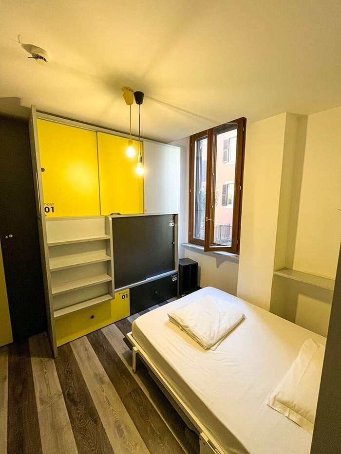 Free Hostels Roma está a solo 4 minutos de la estación de metro de Manzoni y a unos 15 minutos a pie de la estación de tren y autobuses de Roma Termini. Estamos a pocos metros de la Piazza Vittorio Emanuele y a tan solo 19 minutos a pie del Coliseo y otros grandes monumentos. Tiendas y restaurantes a pocos pasos de nosotros. Todas nuestras habitaciones, dobles o compartidas, tienen aire acondicionado y baño privado equipado; nuestras camas con colchón visco-elástico y nuestras literas exclusivas han sido inteligentemente diseñada para proporcionar una privacidad única em todos los aspectos.